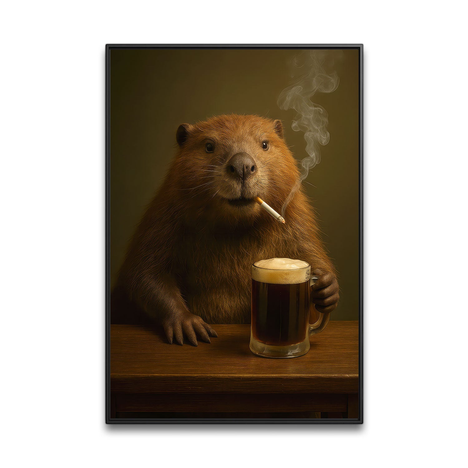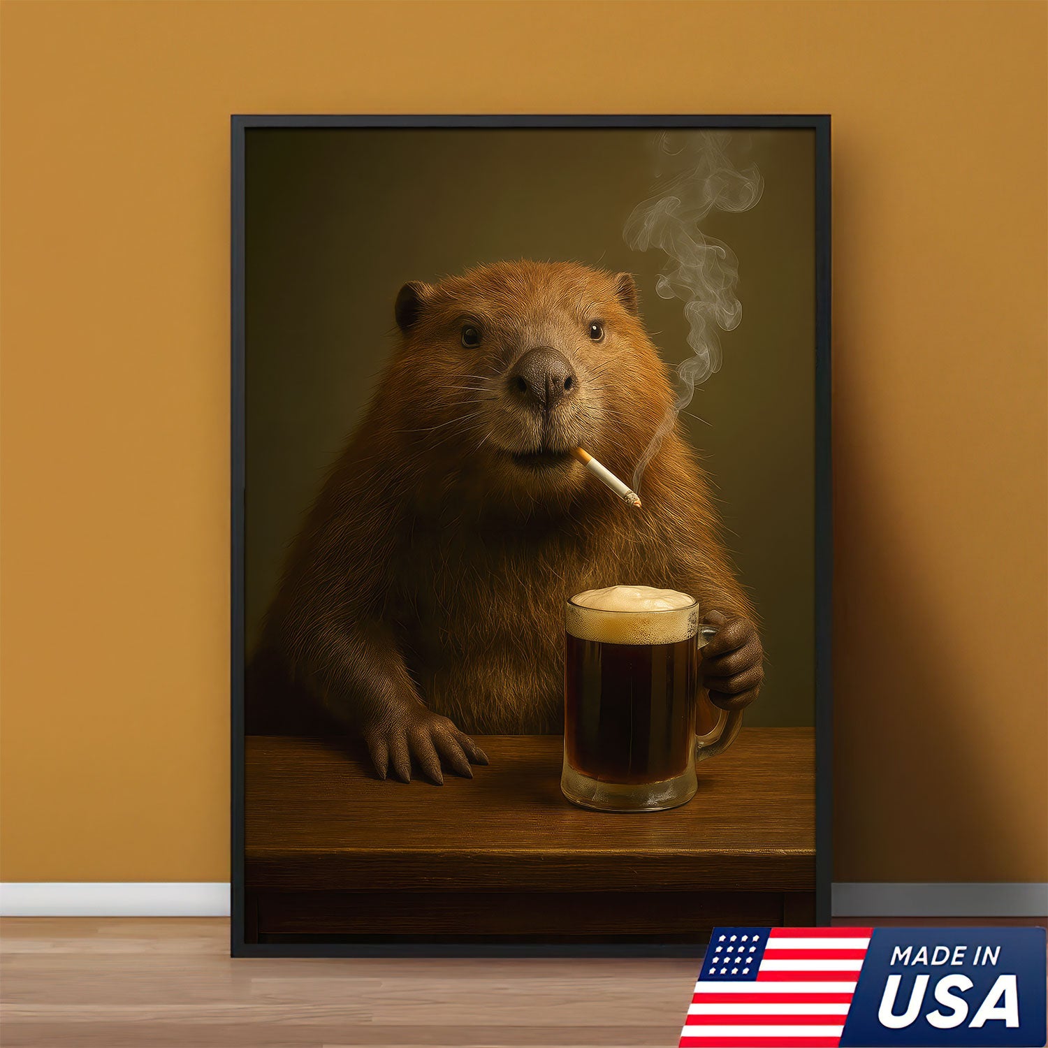 Minnesota Canvas Wall Art, Smoking Beaver Rustic Pub Print, Northern Cabin Decor For Lodge And Man Cave Walls